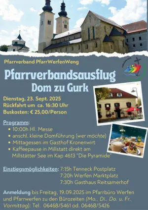 Herzliche Einladung zum Pfarrverbandsausflug am Di., 23. September 2025 zum Dom zu Gurk!