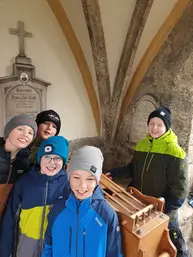 Jedes Jahr dürfen von jeder Pfarre 2 Ministranten in der Karwoche nach Salzburg fahren. Heuer fuhren zum Ministrantentag 8 Minis von unserem Pfarrverband. Die Ministranten besuchten das Domquatier und hatten eine Führung zum Thema "Das Wunder von Ostern". Nach der Führung ging es in das Kunstlabor zum Thema "Osterbasteleien" und anschließend ging es zum Pizzaessen. Höhepunkt dieses Tages war die Ölweihmesse im Salzburger Dom, wo die hl. Öle für die Taufe, Firmung und Krankensalbung vom Erzbischof geweiht wurden. Danach wurden die hl. Öle im Bischofsgarten an alle Pfarren der Erzdiözese verteilt. Der Tag war für unsere Ministranten sehr erlebnisreich und beeindruckend.
